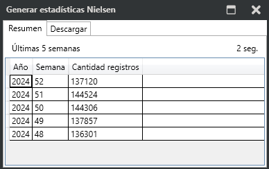 Una vez finalizado, podrá visualizar en la pestaña resumen los registros procesados correspondientes a las últimas 5 semanas.