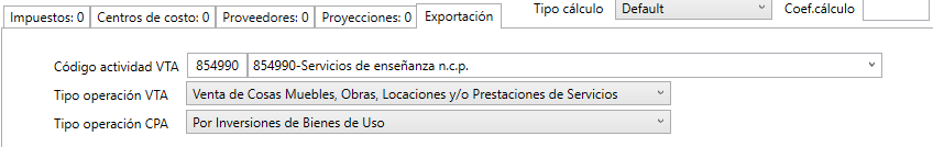Exportación: permite asignar el código de actividad vinculante para las ventas, este es el que se utilizará en los productos.