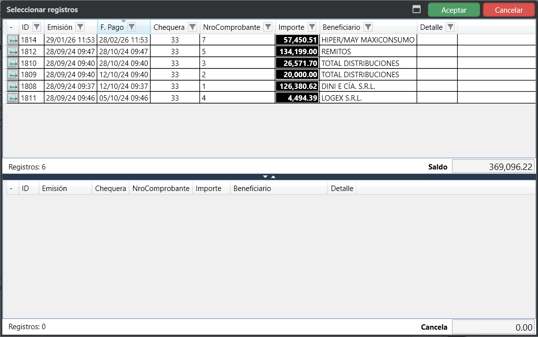 Desde esta ventana se selecciona el cheque que se haya debitado de la cuenta bancaria.