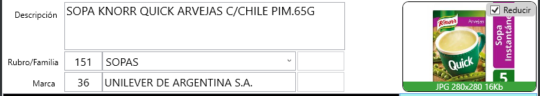 Luego de realizar la búsqueda, se hallan los datos del producto para su alta correspondiente (Marca, Rubro, Descripción e imagen)