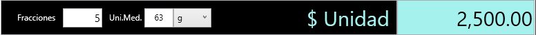 En el sector de la unidad se habilita las fracciones que contiene (unidades). Por ejemplo, una caja de vino (bulto) contiene 6 (fracciones) botellas (unidades).