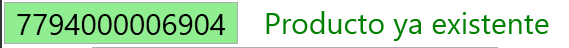 Ingresamos el código de barra manualmente o con una lectora. Al buscar determinara si el Código de barra es nuevo o si ya existe.