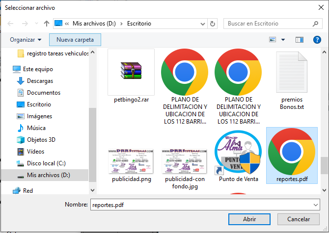 Buscar Archivo Local: Permite adjuntar una imagen de una carpeta de la PC.