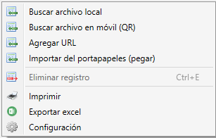 Buscar archivo en móvil (QR): permite adjuntar imagenes desde el celular a traves de un QR (Véase Imágenes: Adjuntar con QR)