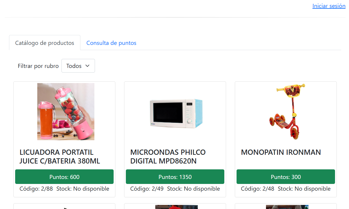 Los clientes tienen la posibilidad de consultar sus puntos así como el catálogo desde una página web: