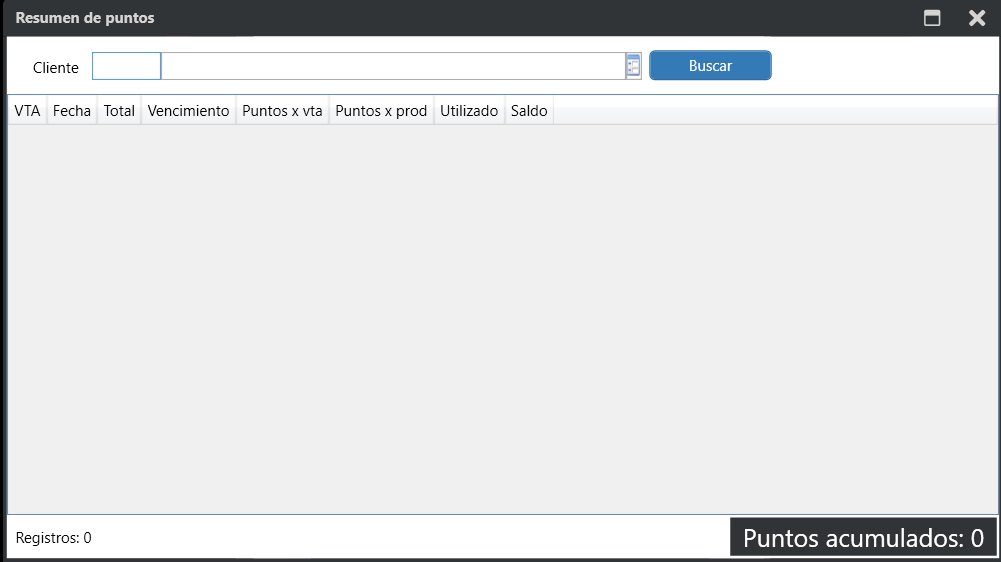 Desde esta ventana es posible realizar consultas de puntos acumulados.