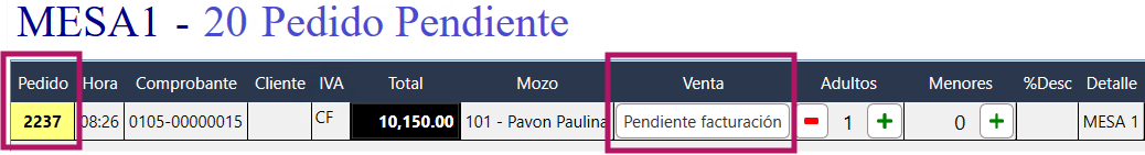 .. Facturar MESA (Local)