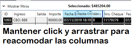La utilización de columnas en el sistema brinda la opción mediante el click derecho, de la selección de columnas que deseamos ver seleccionando el Menú de Configuración.