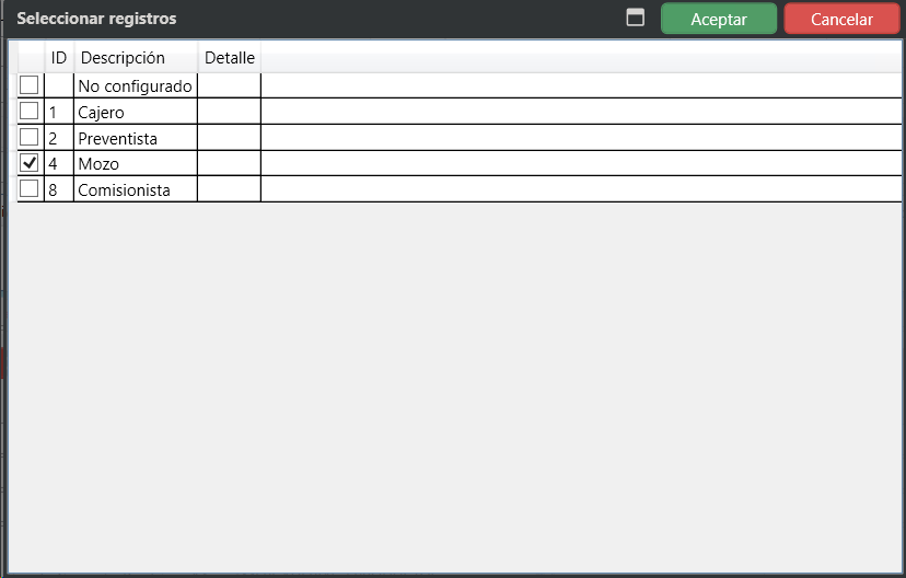 Para habilitar al vendedor como mozo debe seleccionar el tipo Mozo (ver ABM Vendedor)
