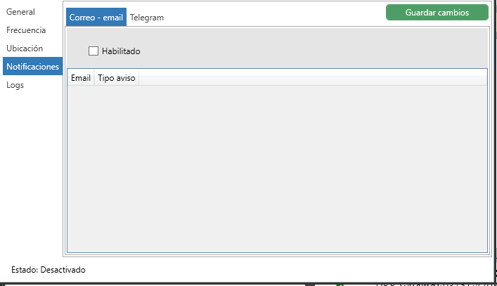 Luego cargar los correos que recibirán la notificación, indicando el tipo de aviso.