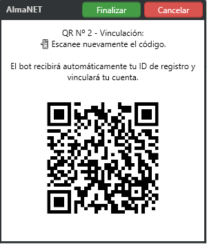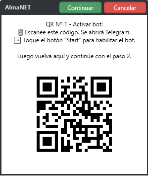 Al habilitar la opción de Telegram, deberá tener a mano su celular, para escanear los QR de configuración.