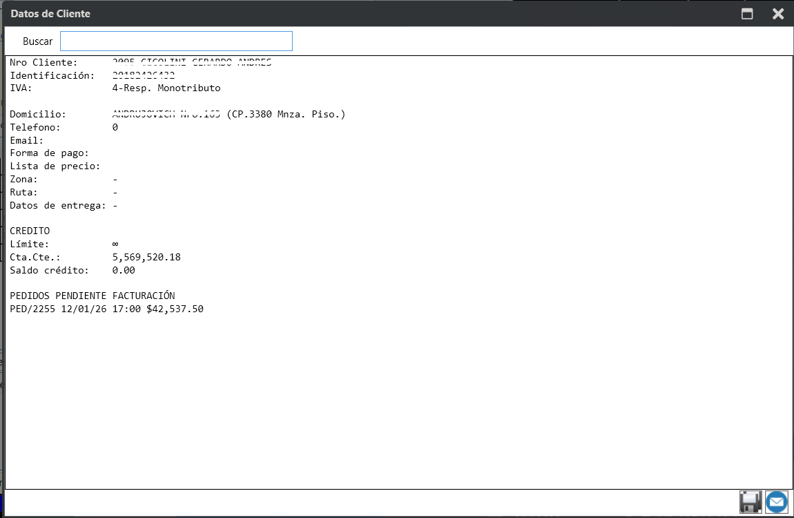 Desde esta ventana es posible obtener un detalle del cliente donde se observan:
