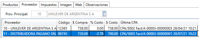 Proveedor Principal: es el distribuidor al que se realiza las compras de mercaderia con mayor frecuencia.